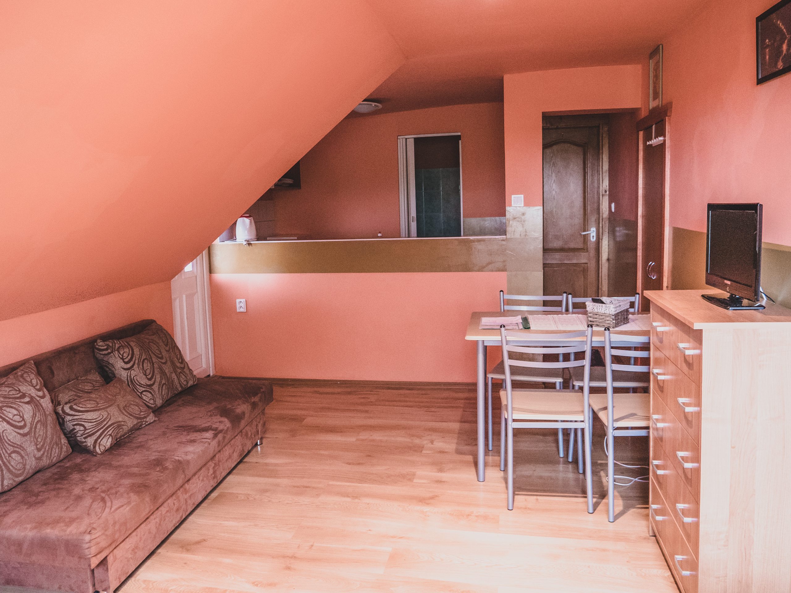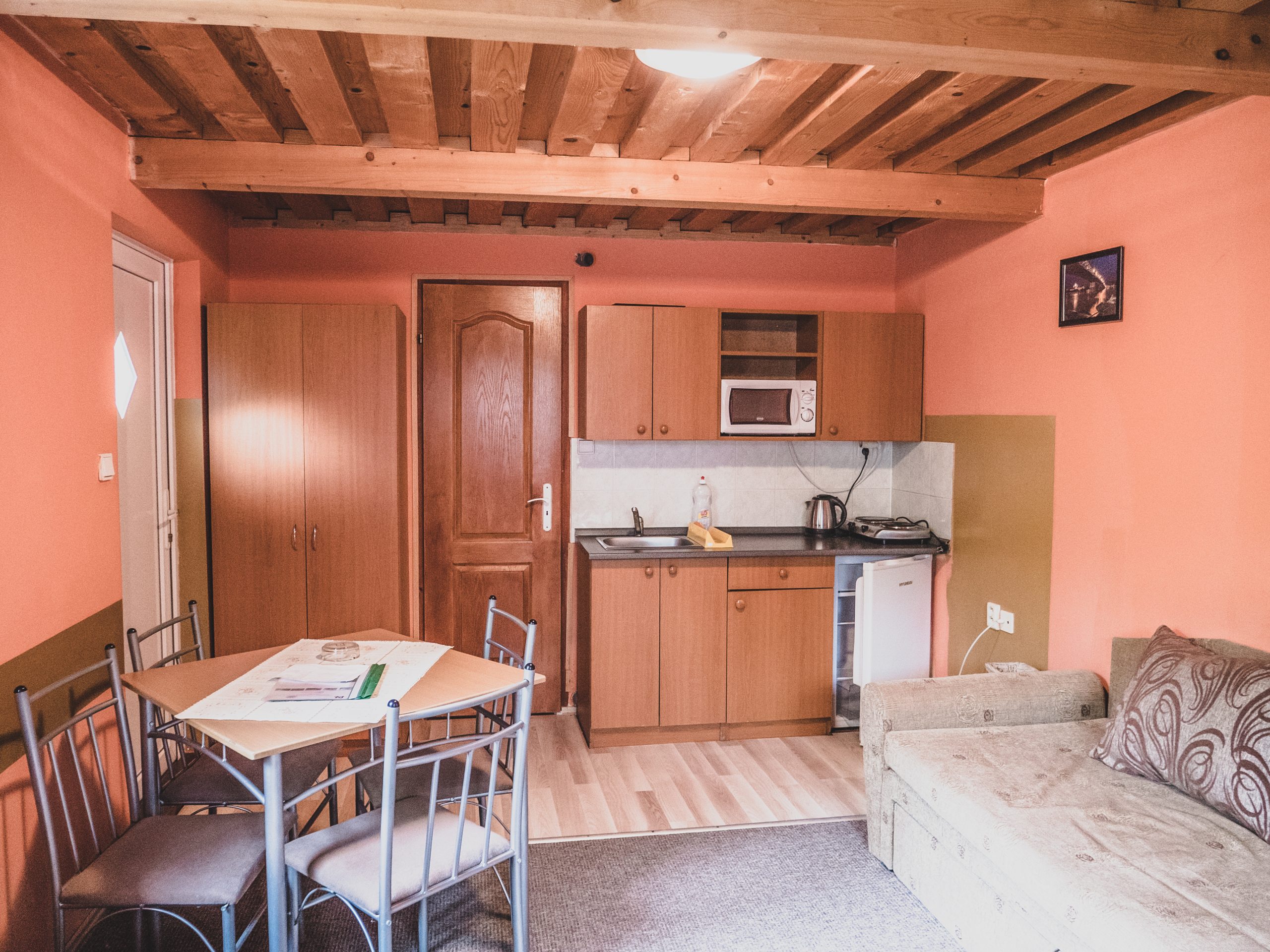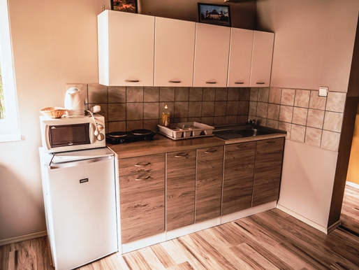 Vybavenie izieb: WiFi , TV, mikrovlnná rúra, dvojplatnička, rýchlo varná konvica, základný riad, chladnička, utierka na riad, posteľná bielizeň, saponát na riad, tekuté mydlo na ruky, toaletný papier pri nástupe