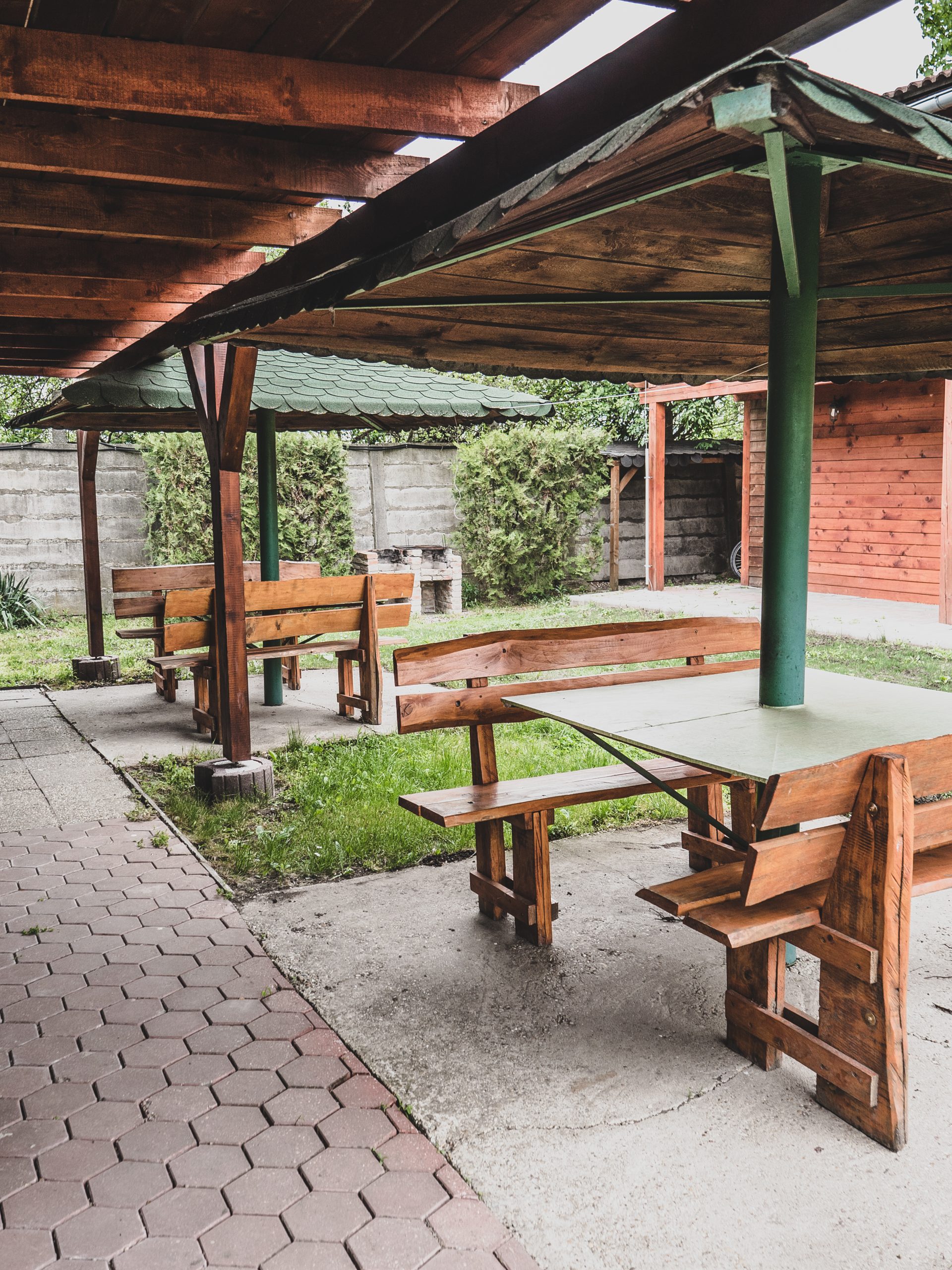 Chata D stojí v areáli kúpaliska za jazerom vedľa chaty C.